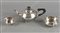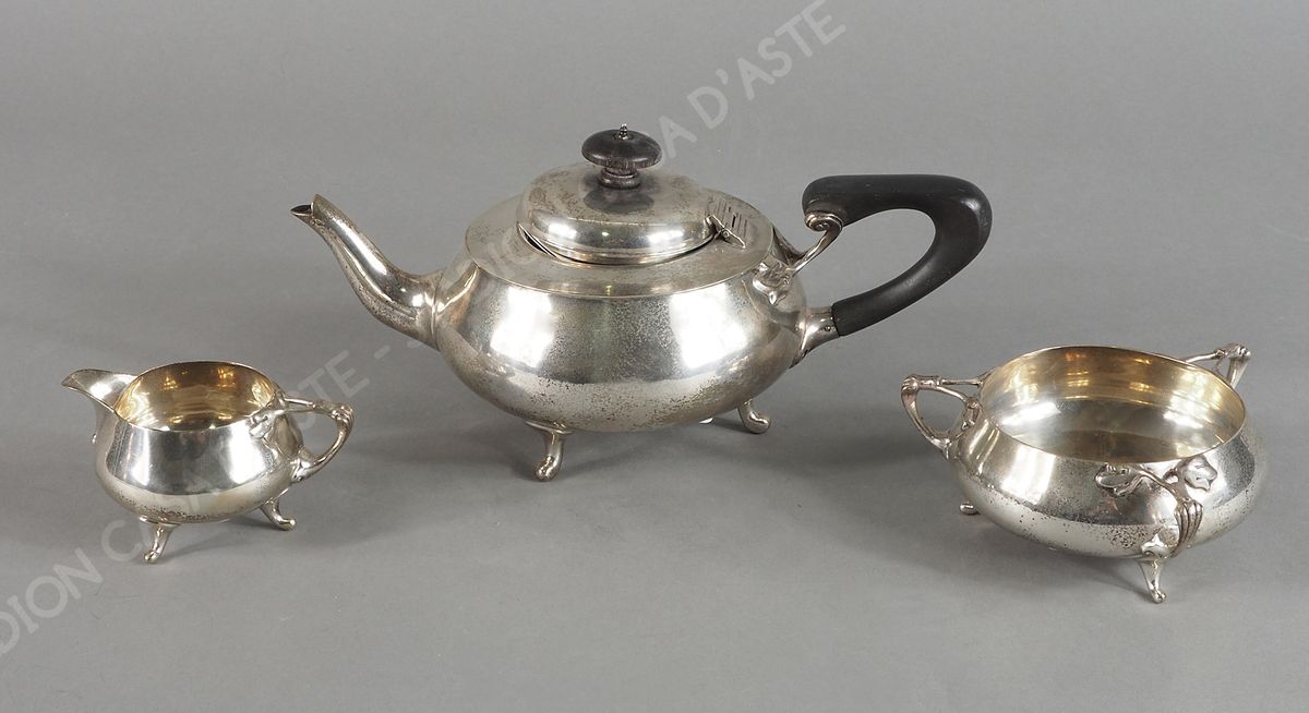Servizio da thè in argento e legno composto da 3 pezzi. gr. 790.
