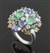 Anello in oro bianco "tutti frutti" con diamanti, smerladi e zaffiri. Misure 16 (con riduttore)