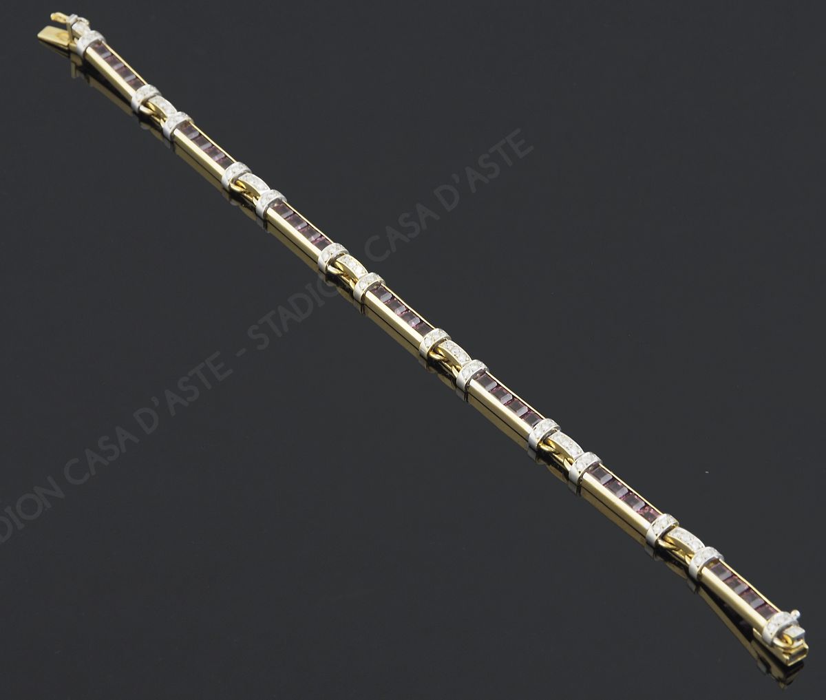 Bracciale a settori in oro giallo con tormaline e diamantini, gr 23