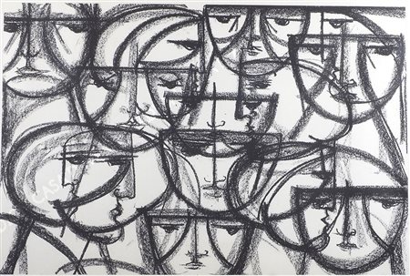 Alice Gombacci Monfalcone 1925 "Volti" cm. 64x86 - litografia Firmato b. a d....