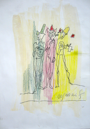 Rognoni Franco " i musicanti " tecnica mista su carta cm 21 x 30,5 firmato in basso a destra, autentica su foto dell'artista- Prov.COLLEZIONE PRIVATA