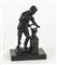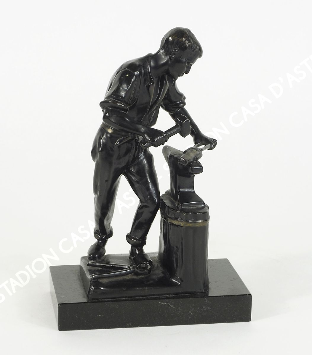 Scultura in bronzo a patina scura raffigurante fabbro, su base in marmo nero. H. tot cm. 20,