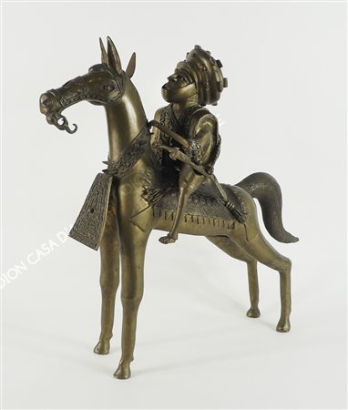 Grande scultura in bronzo raffigurante figura orientale a cavallo. H. cm. 55.