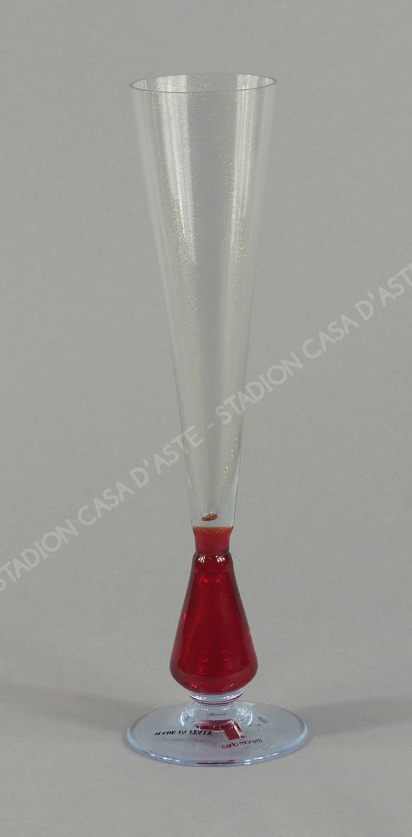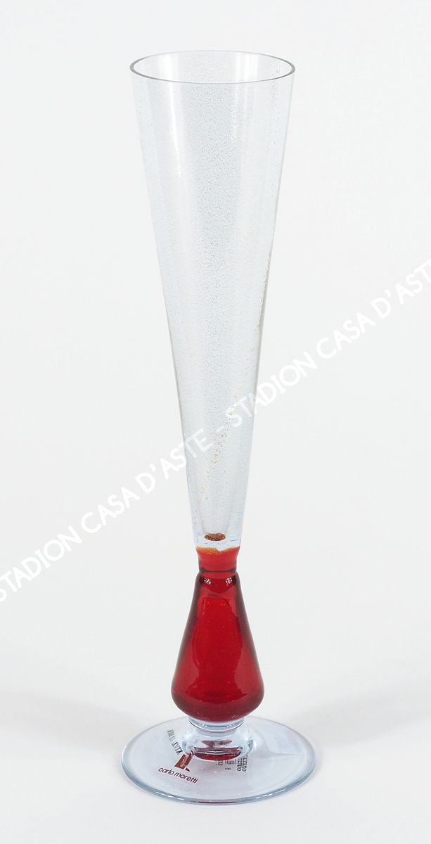 Lotto 794 | Carlo Moretti: calice in vetro trasparente azzurro e rosso. Entro scatola...