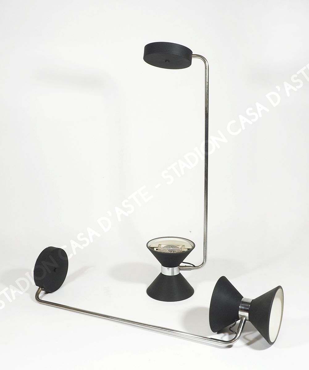Lotto 801 | Coppia di lampade a sospensione in metallo cromato con braccio snodabile....