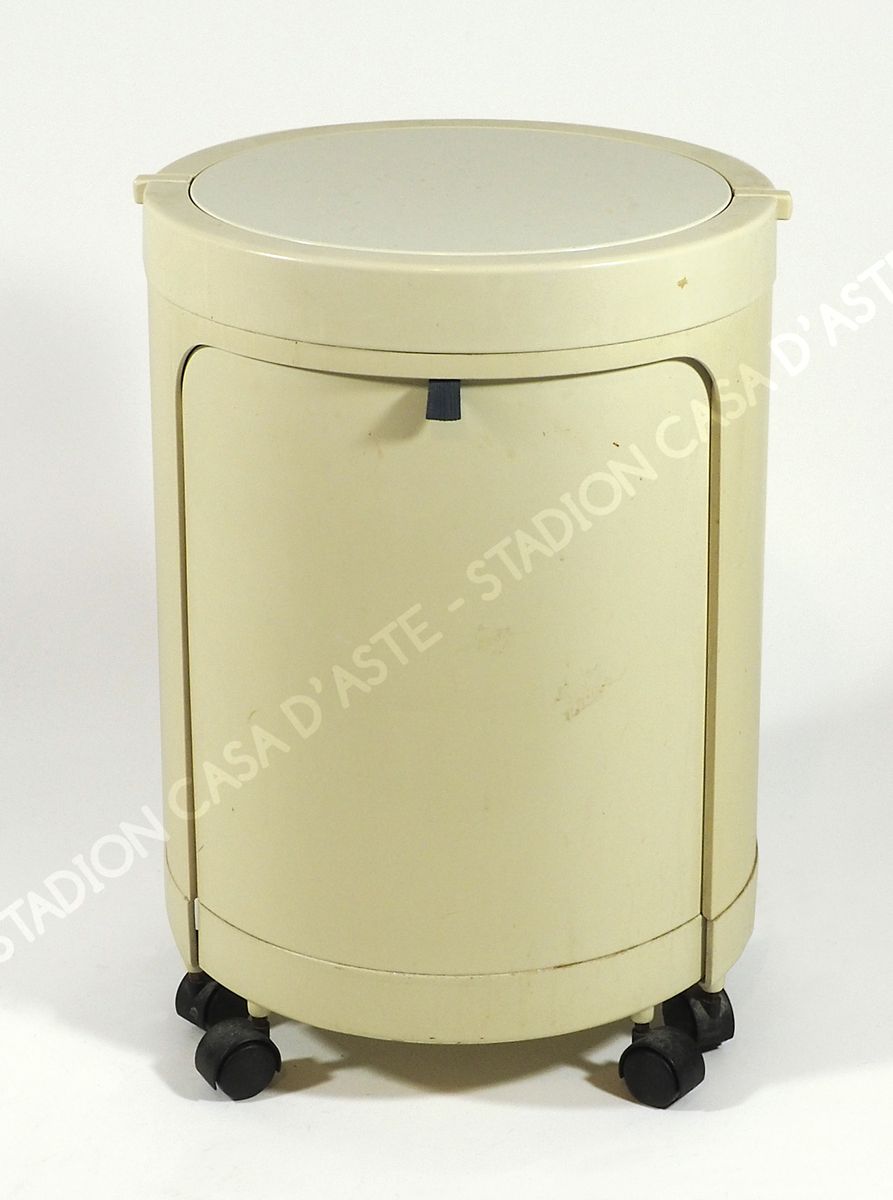 Lotto 806 | Kastilia: toilette in pvc bianco con con specchio basculante e sedia. Anni '70.
