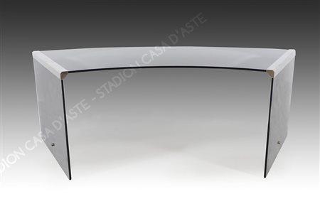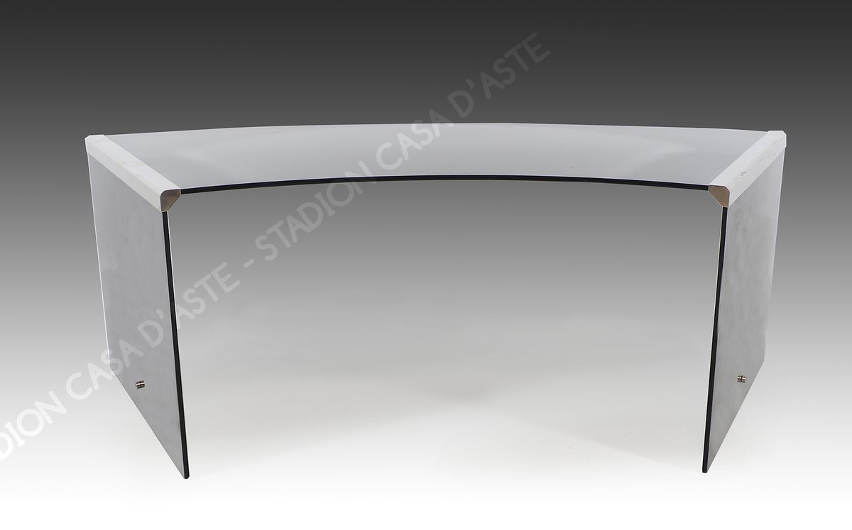 Gallotti & Radice: scrivania di forma arcuata in vetro fumè con montatura...