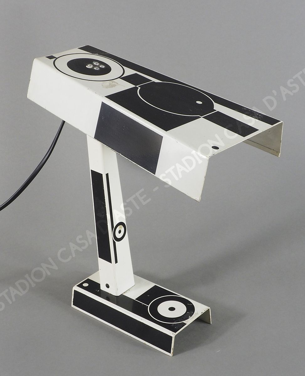 Lampada da tavolo in metallo bianco nero decorata a motivi geometrici. H. cm....