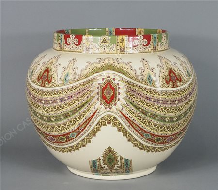 Etro: grande cachepot in ceramica policroma. Firmato sotto la base Etro Made...