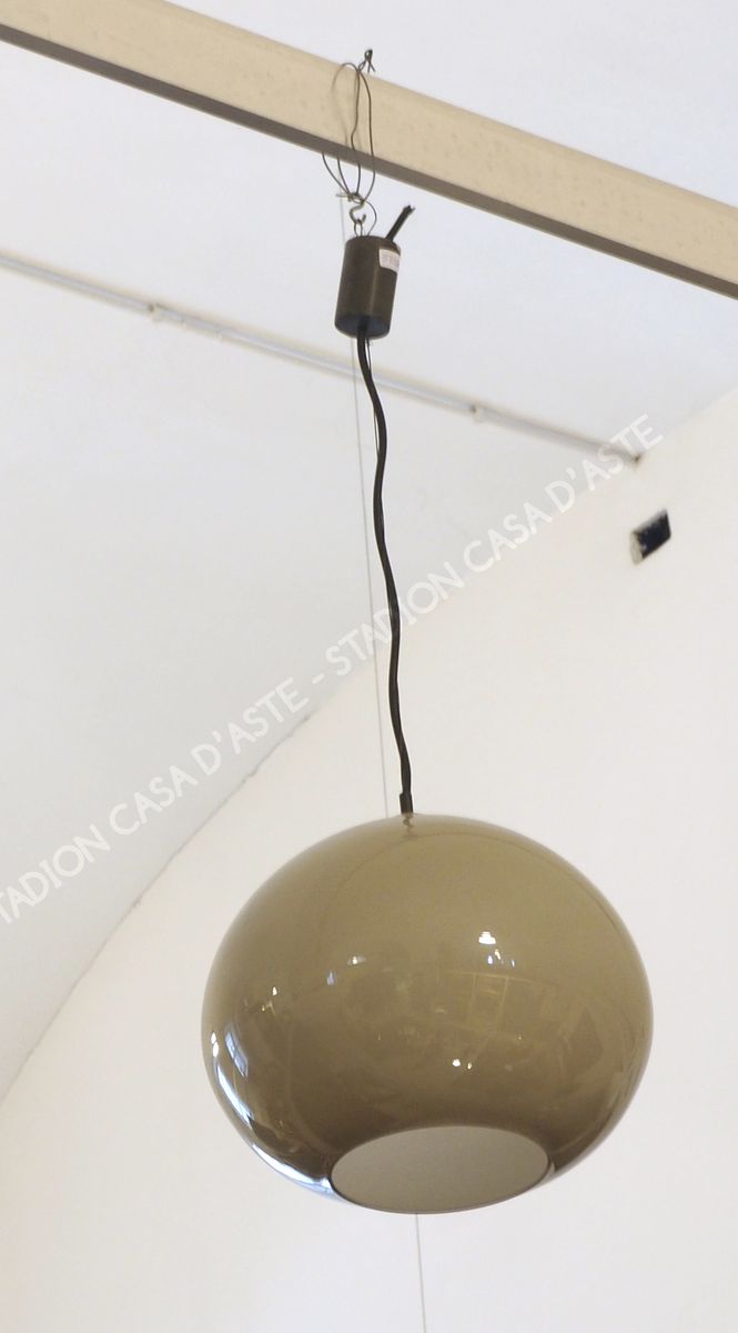 Lampada a sospensione in vetro marroncino. Anni '60.