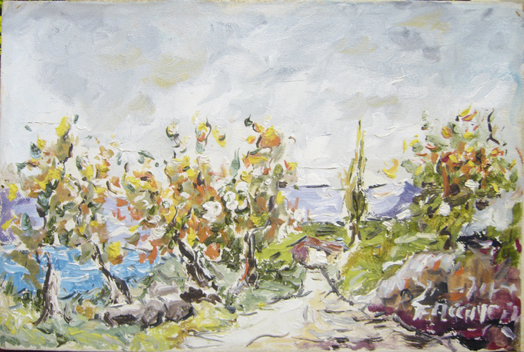 Faccincani Athos " Novembre sul lago " olio su tela cm 30 x 20 anno 1975...