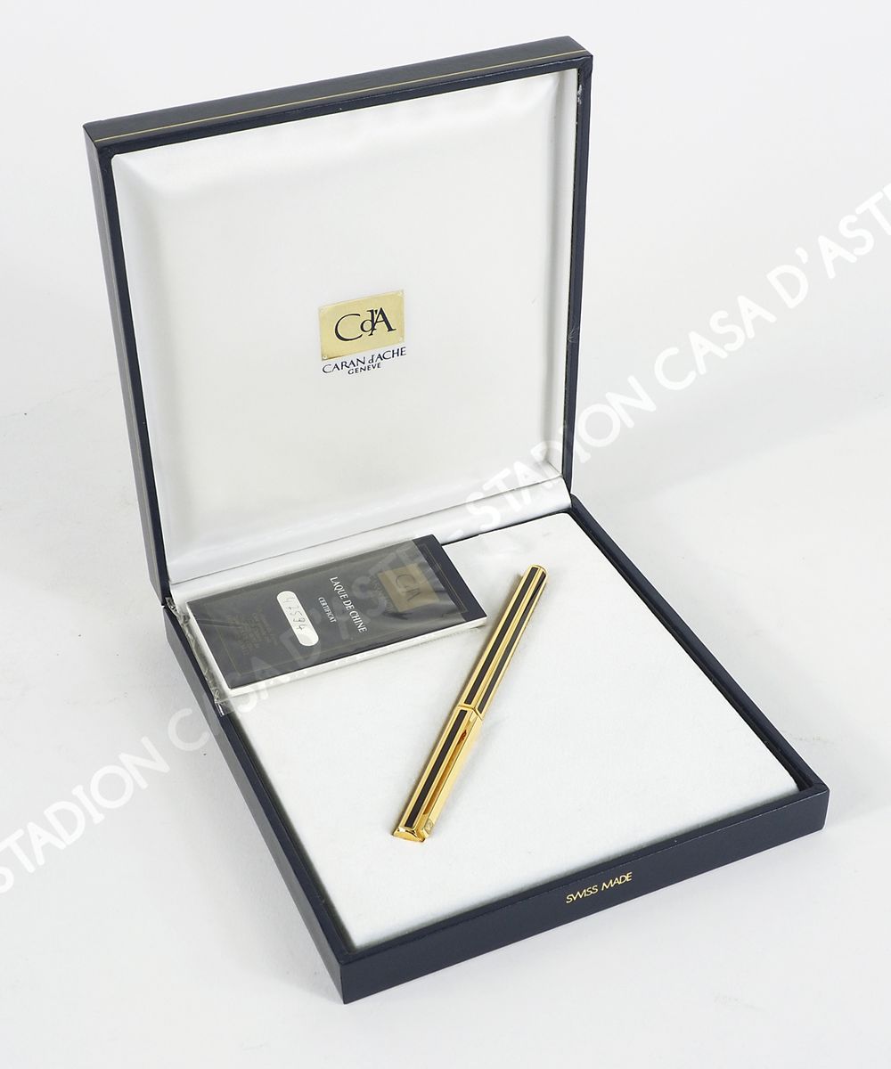 Caran d'Ache: penna stilografica in lacca cinese nera e acciaio placcato in oro giallo con pennino in oro giallo. Entro astuccio originale