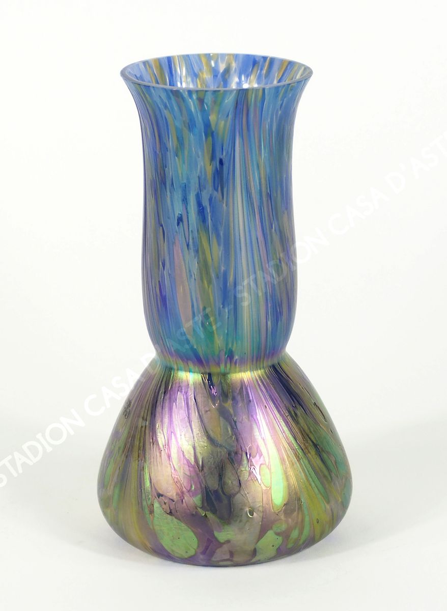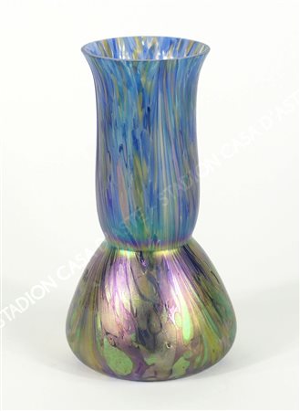 Vaso tipo Loetz in vetro verde/blu. H. cm. 21.
