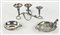 Lotto di 3 oggetti in metallo tra cui portacandele e contentitore. Epoca...