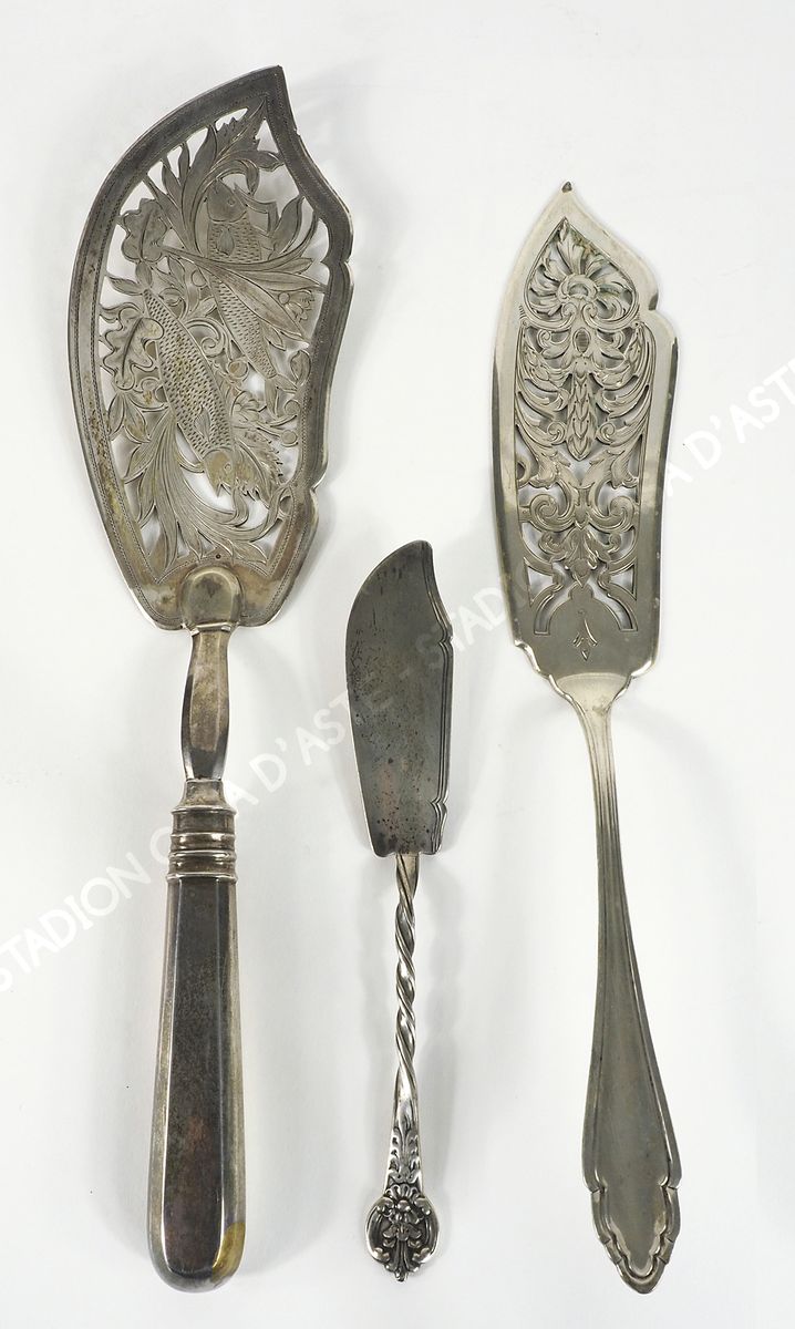 Lotto di 3 palette in argento traforato. Una eseguita dal maestro J.C. Klinkosch negli anni '20.