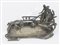 Centrotavola in peltro lavorato con foglie e figure di cigni a rilievo, sul...