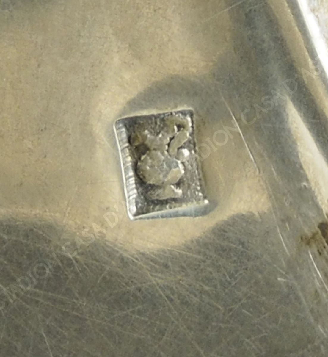 Centrotavola di forma ovale in argento traforato a motivi floreali e due...