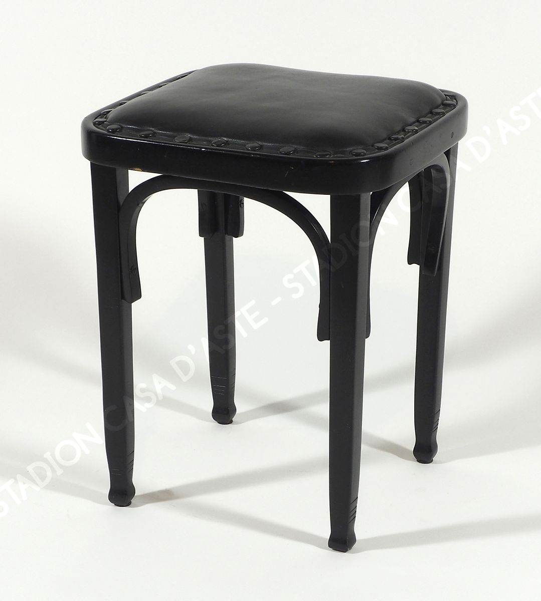 Lotto 948 | Sgabello in legno scuro con seduta in cuoio. Austria, inizio XX secolo.