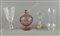 Lotto di 4 oggetti in vetro trasparente tra cui coppa con coperchio e calice....