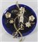 Piatto in ceramica blu con applicazioni in metallo raffiguranti figure...