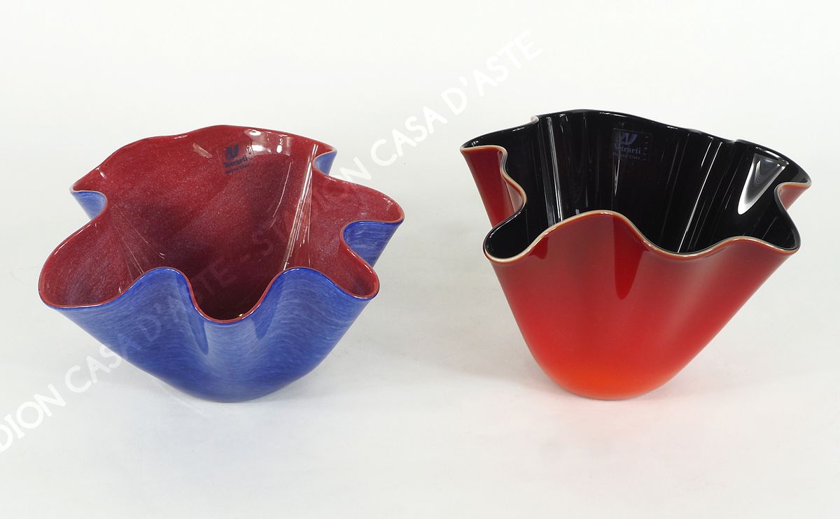 Lotto 960 | Lotto di 2 vasi "fazzoletto" in vetro policromo.