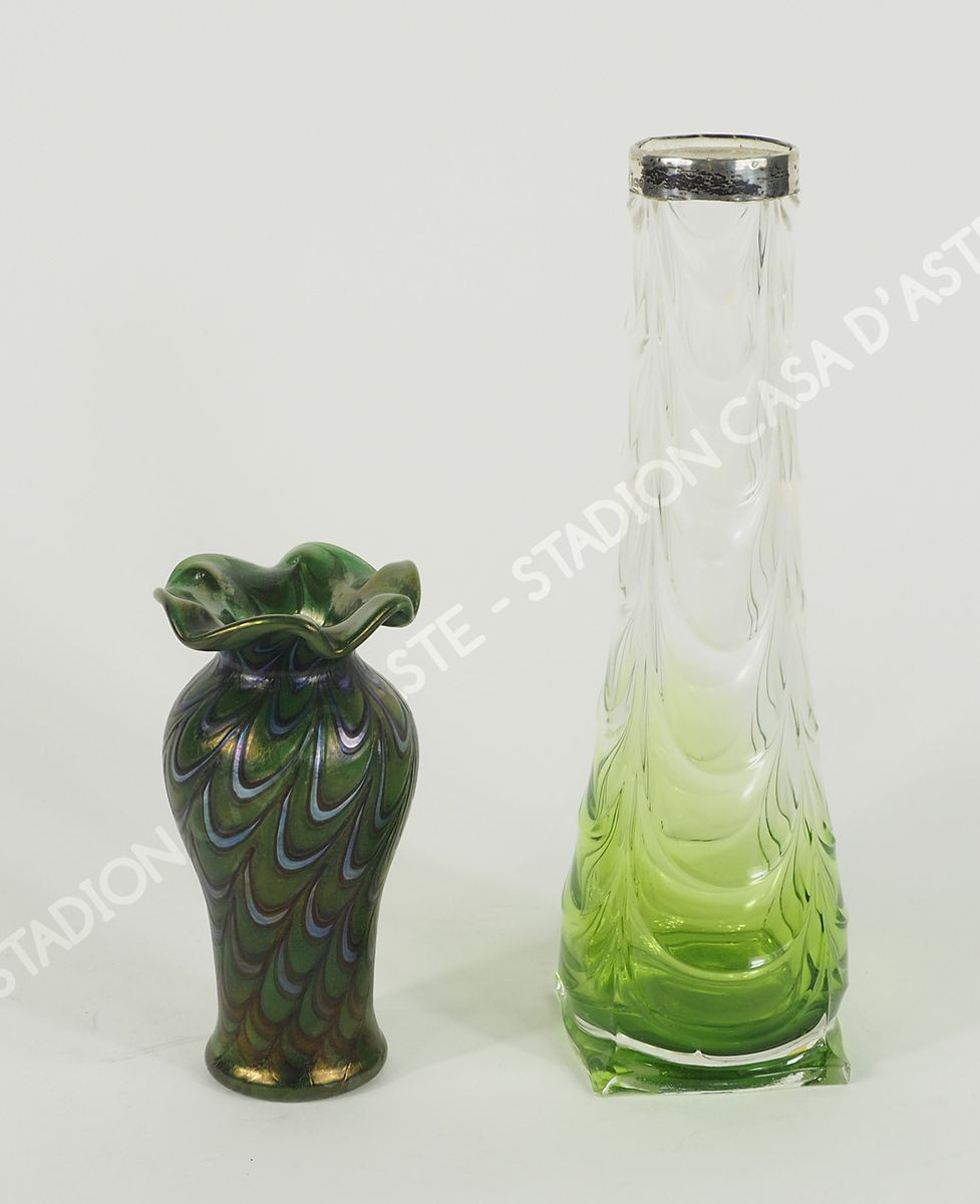 Lotto 966 | Lotto di 2 vasetti in vetro, uno con collo in argento. Anni '20. H. max cm. 20.