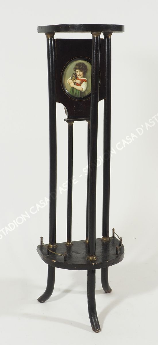 Lotto 968 | Colonna in legno scuro con applicata una miniatura. Inizio XX secolo. H. cm....