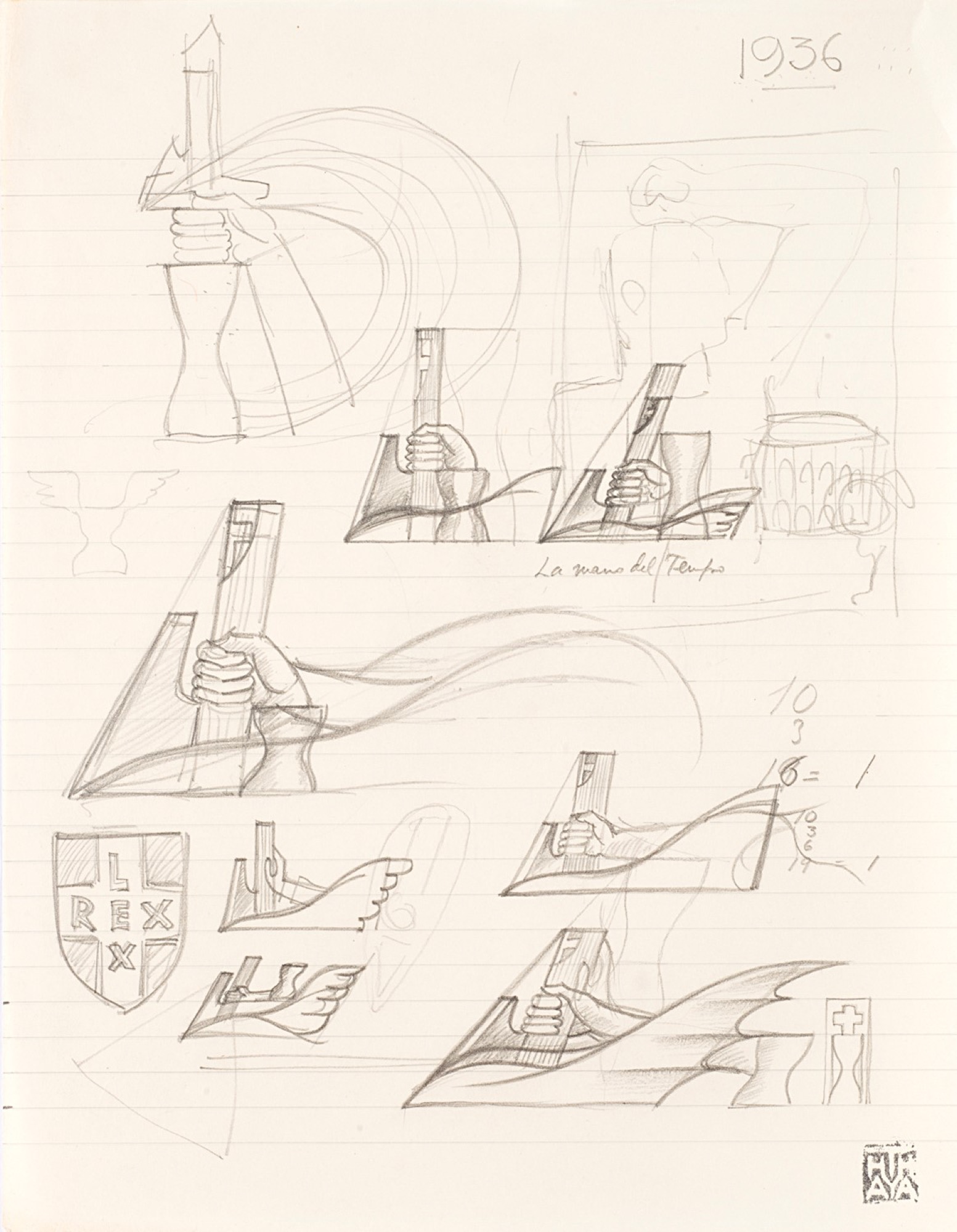 Datato e titolato a destra: 1936, La mano del tempo