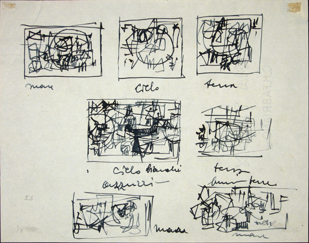 Scanavino Emilio " mare,cielo,terra " pennarello su carta cm 28 x 22 anno 1953 datata in basso a sinistra, autentica su foto dell Sig.Scanavino Giorgina, Prov.COLLEZIONE PRIVATA