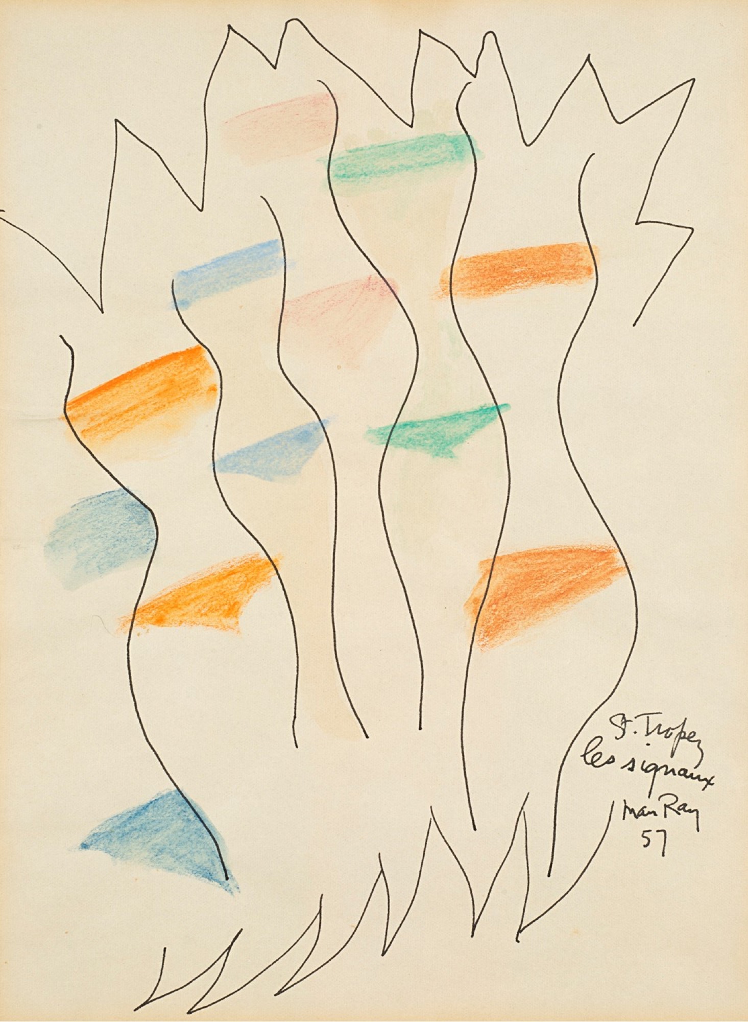 Titolato, firmato e datato in basso a destra: St. Tropez-Les Signaux, Man Ray 57