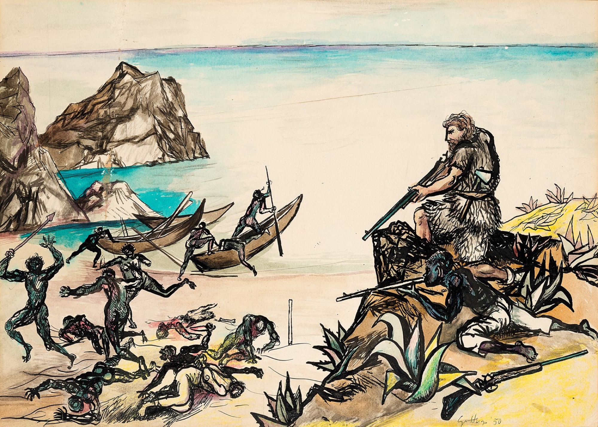 Renato Guttuso (Bagheria 1911-Roma 1987) - Robinson Crosuè /Assalto, 1950
