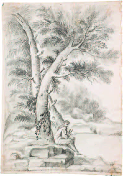 Alessio de Marchis (cerchia) PAESAGGIO CON FIGURA tecnica mista su carta, cm 34,2x23,5.