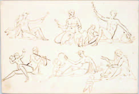Scuola Neoclassica A) STUDIO PER SCENA MITOLOGICA B) STUDIO PER SCENA MITOLOGICA inchiostro su carta, cm 17,7x26,4 (ciascuno)