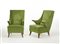 Pair of upholstered armchairs with solid wood frame and green velvet covering. Italy, 1950s/1960s. (63x103x75 cm.) (defects)