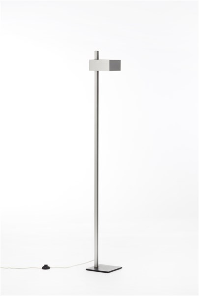 Floor lamp. Poggibonsi, 1970s. Anodised aluminum and black painted iron. (h 161 cm.) (slight defects)