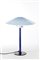 Lampada da tavolo modello "Chiara". Venini, Murano, 1984. Fusto in vetro soffiato blu a baguette, paralume in vetro incamiciato lattimo e azzurrino, base in ghisa. (h cm 57)