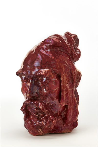 Boni Scultura a tutto tondo raffigurante testa maschile in ceramica smaltata ros