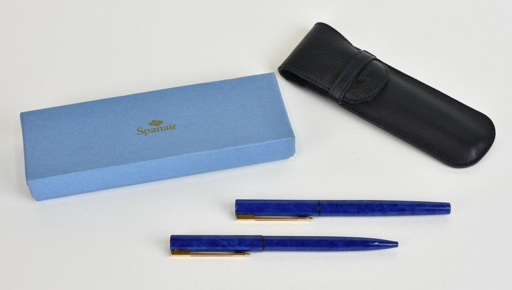 in lacca effetto lapislazzulo, personalizzate per la compagnia aerea Spanair, una stilografica e una penna a sfera