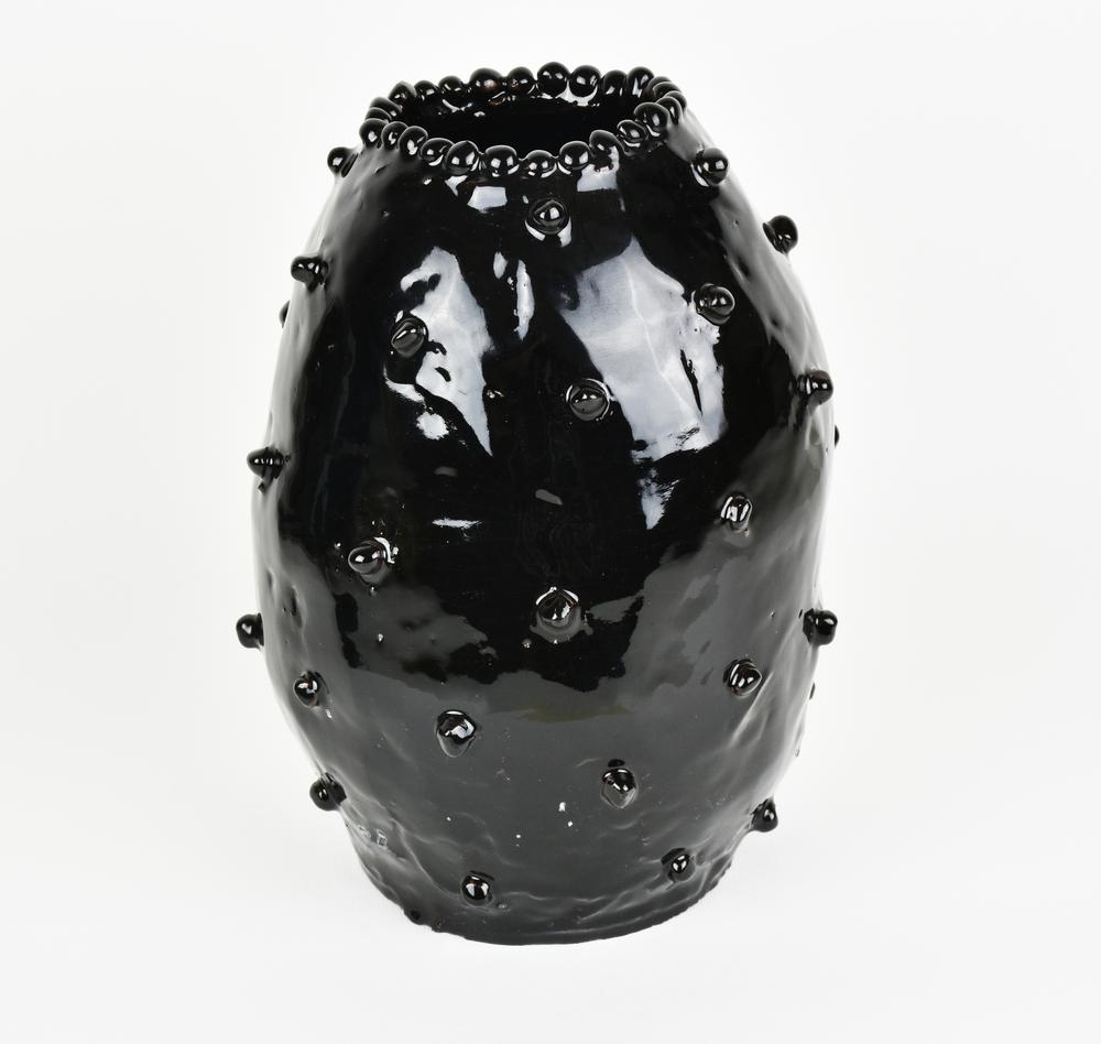 VASO IN TERRACOTTA INVETRIATA nera con decorazioni a rilievo h. cm 25
