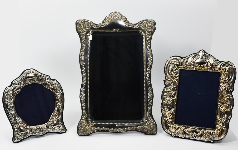 LOTTO DI 2 CORNICI E UNO SPECCHIO IN ARGENTO 925 sbalzato cm 22x19, 27x22 e...