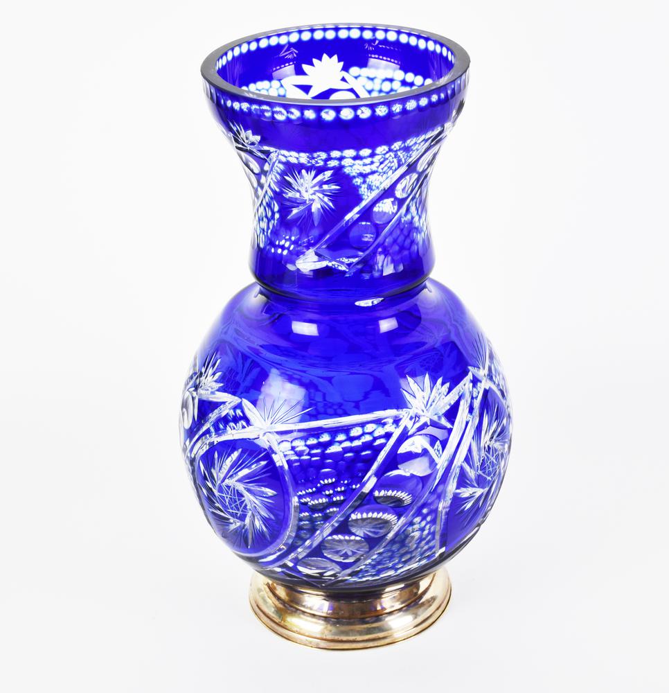 VASO IN CRISTALLO DI BOEMIA blu con base in argento alt. cm 33