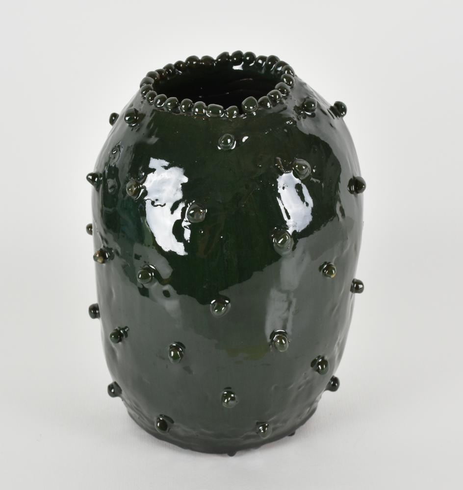 VASO IN TERRACOTTA INVETRIATA verde con decorazioni a rilievo h. cm 24