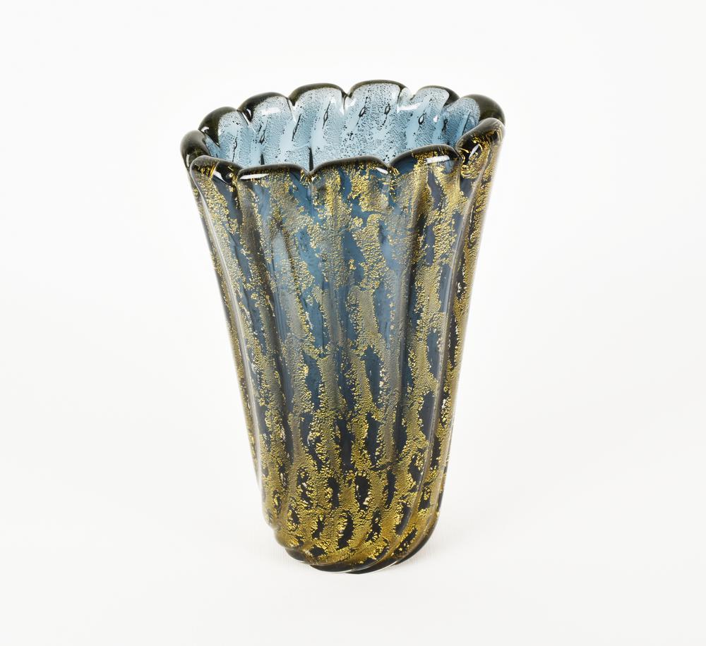 VASO IN VETRO DI MURANO fumé con inclusioni in foglia d'oro, Formia Fornace...