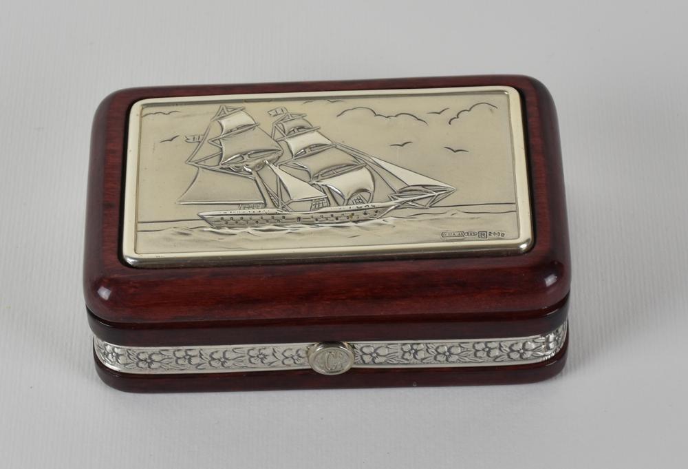 SCATOLA IN LEGNO CON DECORAZIONI IN ARGENTO 925 cm 4x12x8