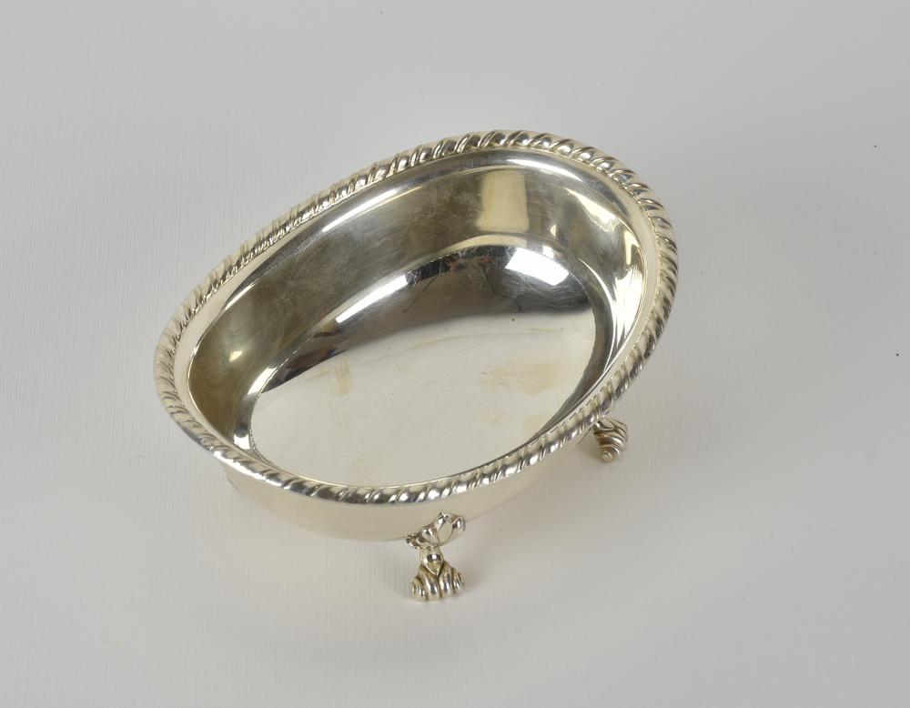 PORTAOGGETTI IN ARGENTO bordo godronato e piedini zoomorfi gr 100 circa cm...