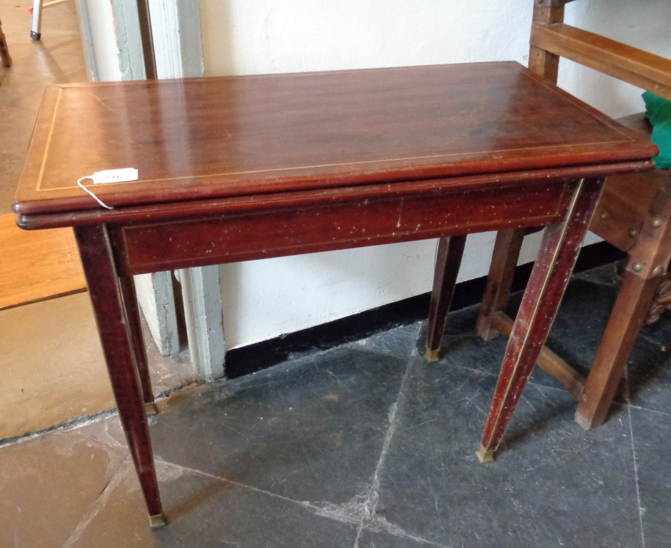 Tavolo da gioco in mogano con profili in ottone, fine sec.XIX