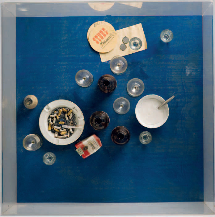 Daniel Spoerri Galati, 1930 TABLEAU PIÈGE, 1972 Tecnica mista in teca di plexiglas, cm 70x70x40. Titolato, datato e firmato al verso: Rest Spoerri… Jahrgang 72, 22 Juni, Tableau Piège, Daniel Spoerri. Autentica su fotografia firmata dall’artista. Provenienza: Zurigo, Galerie Bruno Bischofberger; Bergamo, Elleni Galleria d’Arte (etichetta al verso dell’autentica); Bergamo, collezione privata. Esposizioni: Bergamo, Elleni Galleria d’Arte, Daniel Spoerri, 16 Ottobre-27 Novembre 1990. Bibliografia: Daniel Spoerri, catalogo della mostra, Elleni Galleria d’Arte, Bergamo 1990, n. 5, p. 69 riprodotto.