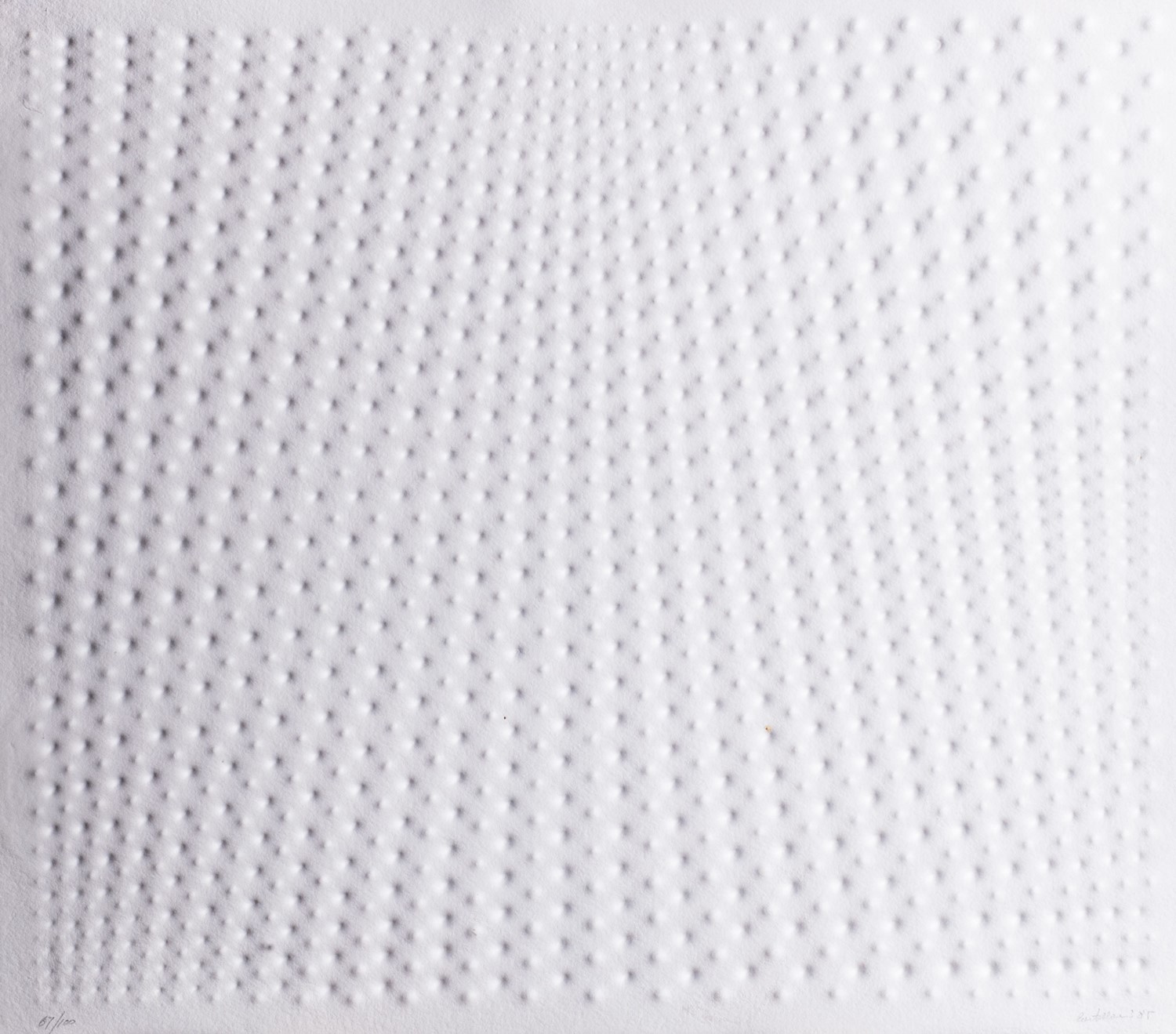 Impressione a secco, es. 67/100 (dalla tiratura di 100 ess. e 10 ess. P.A.), cm 54 x 62 (misure di ciascun foglio), (sc)