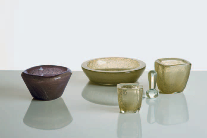 Carlo Scarpa COPPA IN VETRO, 1935 circa Prodotta da Venini. In vetro a bollicine viola e foglia d’oro. Firmata ad acido: Venini Italia. Altezza cm 7