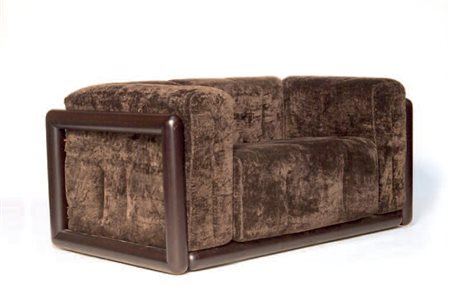 Carlo Scarpa DIVANO “CORNERO”, 1973 Prodotto da Simon. Struttura a due posti in legno, resina e tessuto marrone; cm 68x138x82,5 Bibliografia: G. Gramigna, Repertorio del Design Italiano 1950 - 2000, Torino, 2003, p. 211.